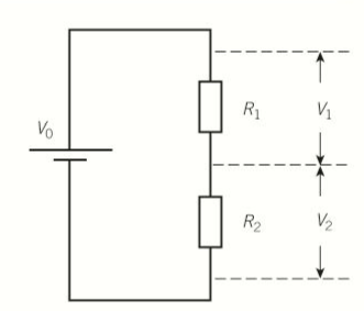 - Considering two resistors: R1 and R2 in series connected to a source of pd (V0) as shown below: