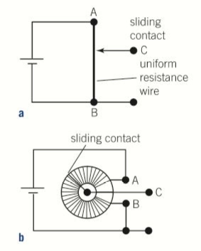 - A sliding contact on the wire can then be moved along the wire.