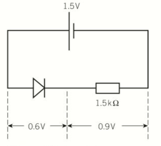 - For example, a diode that is connected in its forward direction in a series with a 1.5V cell of negligible internal resistance and a 1.5KΩ as shown below.