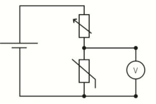 - Consists of a potential divider made using a thermistor and a variable resistor like below: