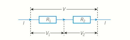 - For two resistors R1, R2 in series, as shown above, when current I passes through the resistors: