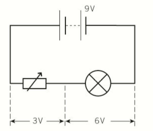 - In the diagram below, the battery has an emf of 9V, the variable resistor is adjusted so that the pd across the light is 6V