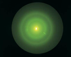 - Each ring is due to electrons diffracted by the same amount from grain of different orientations at the same angle to the incident beam.