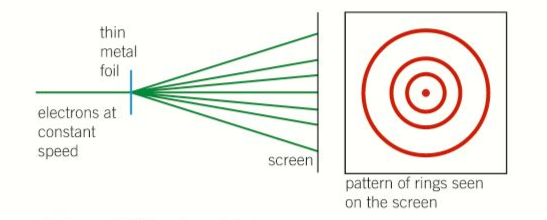 - The electrons in the beam pass through the metal foil and are diffracted in certain directions only, as shown in the diagram above.